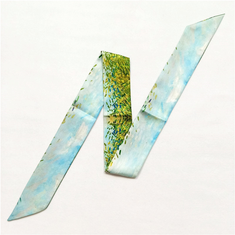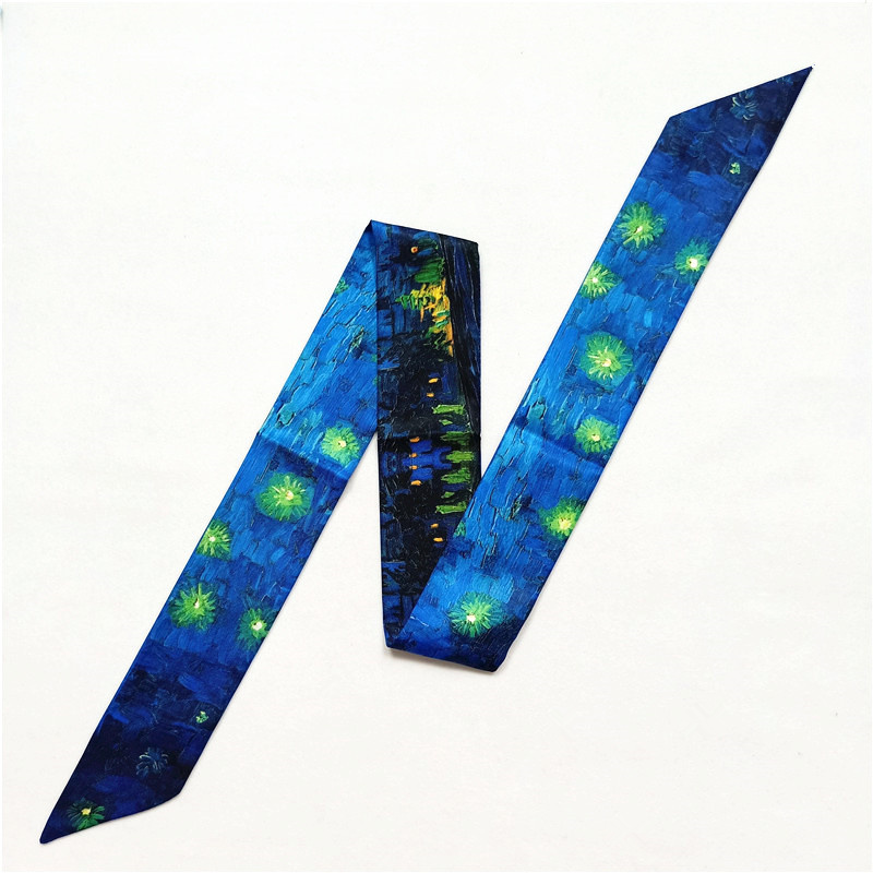 Elevate your look with this Elegant Art-Inspired Silk Skinny Scarf, where timeless art meets modern fashion. Inspired by the masterpieces of Van Gogh and the serene beauty of the Qingming Festival on the River, this scarf captures the essence of creativity, culture, and sophistication. Crafted for women who appreciate elegance and individuality, this scarf turns any outfit into a statement of taste and refinement.
