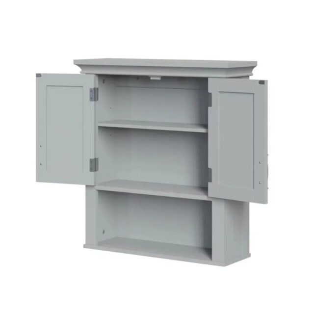 Introducing the perfect blend of functionality and style for your bathroom – our Elegant Gray 2-Door Bathroom Wall Cabinet. This beautifully designed storage solution adds a touch of sophistication to any bathroom decor while keeping your essentials organized and within reach. Its classic design, featuring inset doors and side panels along with a coved top shelf, ensures a timeless look that complements any interior.
