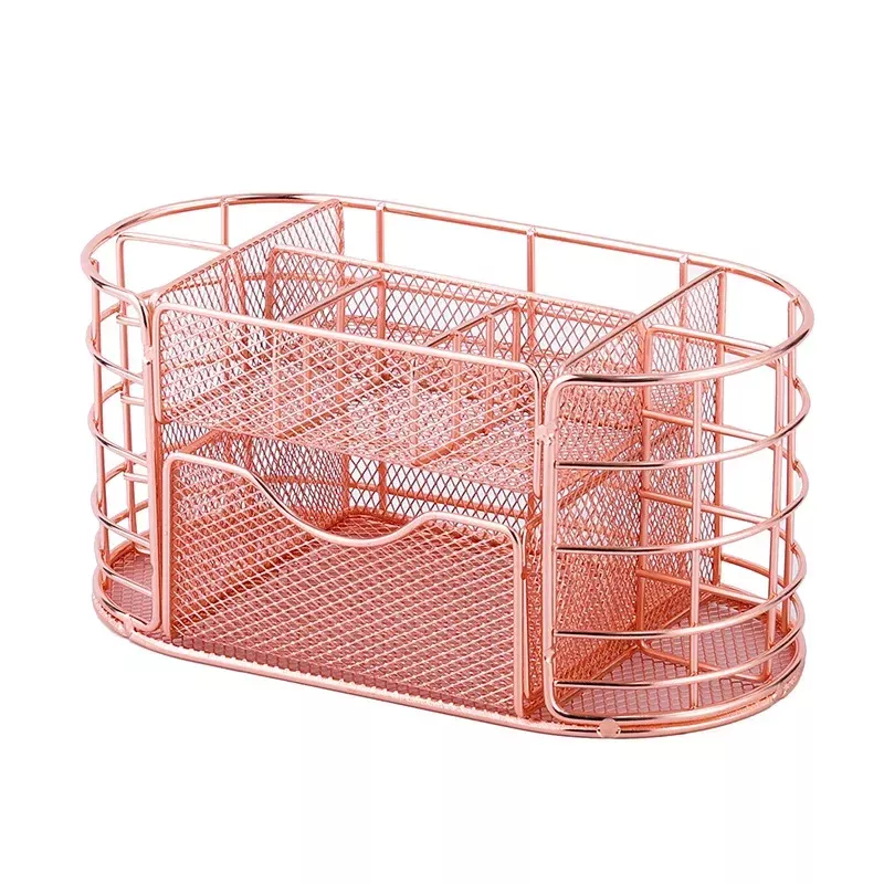 What makes this organizer special is its ability to combine beauty with utility. The rose gold mesh design is both breathable and modern, keeping your items visible while adding a decorative flair to your space. Its multiple compartments make it a breeze to organize small items efficiently—no more digging through drawers or cluttered desks.