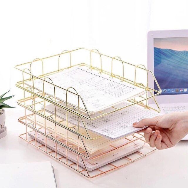 Our Rose Gold Metal Desk Organizer stands out with its elegant design and sturdy construction. Unlike ordinary organizers, it not only serves as a functional item to keep your documents organized but also as a statement piece that enhances the aesthetics of your workspace. The rose gold finish adds a warm, inviting glow, making it a unique and eye-catching addition to any desk.