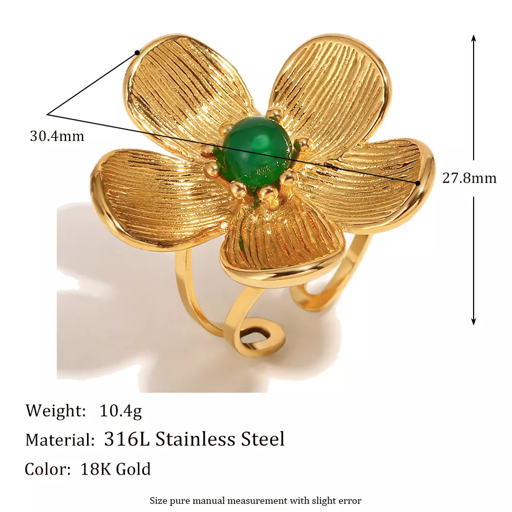 Exaggerated Green Gemstone Stainless Steel Ring for Women – Trendy PVD Plated Finger Jewelry