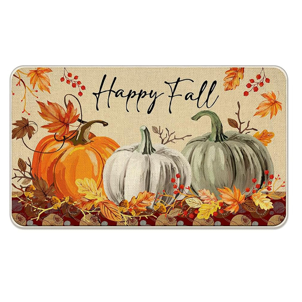 With its soft texture, rich fall tones, and practical features, this rug does more than decorate – it elevates your space. Celebrate the season of comfort and color by adding this delightful Fall Pumpkin Kitchen Mat to your home today.