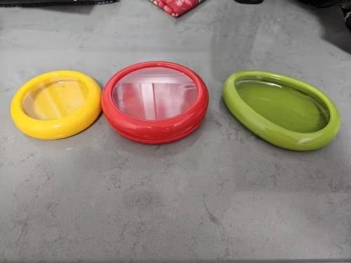 • Sizes: 5” x 5” x 1” (red, brown), 4” x 4” x 1” (yellow), 5.5” x 4” x 1” (green)
