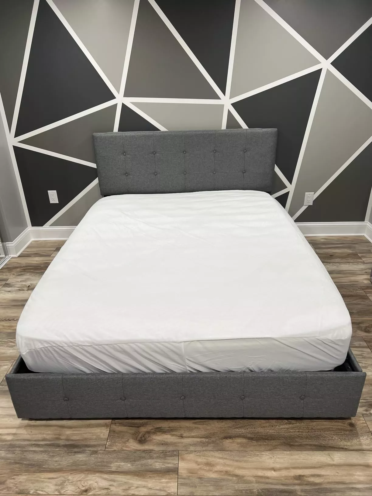 Introducing our Full-Size Upholstered Bed Frame, a perfect fusion of modern elegance and practical design. This luxurious bed frame is not just a piece of furniture; it’s a statement of style and convenience for your bedroom. Whether for a cozy apartment or a spacious home, this bed frame transforms your sleeping space into a haven of comfort and organization.