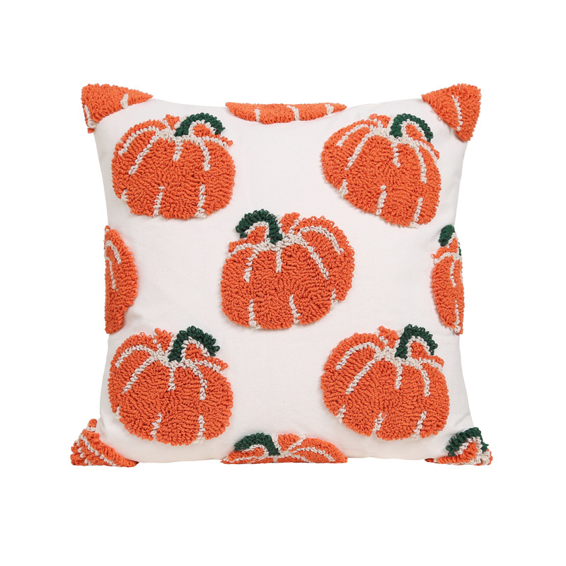 • Design: Geometric tufted embroidery with a festive pumpkin motif