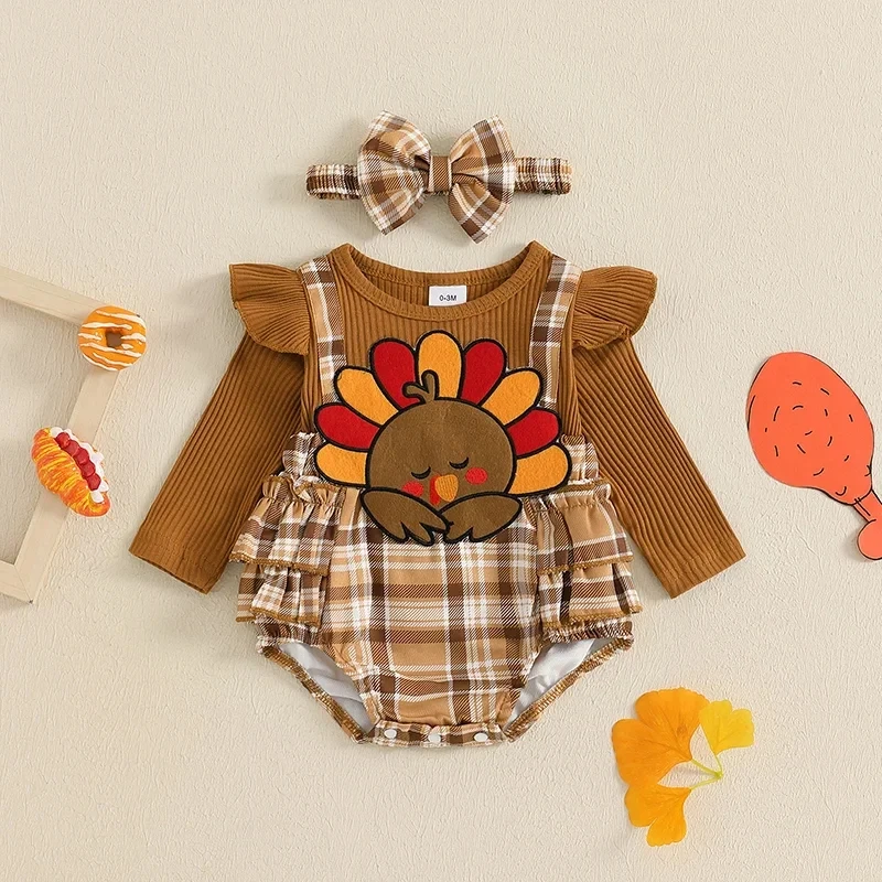 This outfit isn’t just about looking adorable – it’s made for comfort, movement, and memorable moments. The thoughtful design allows your little one to play, pose, and celebrate without feeling restricted. The soft fabric is gentle on her skin, while the bright turkey pattern brings smiles all around. Whether she’s posing for family photos or enjoying dinner with loved ones, she’ll shine in this festive set.