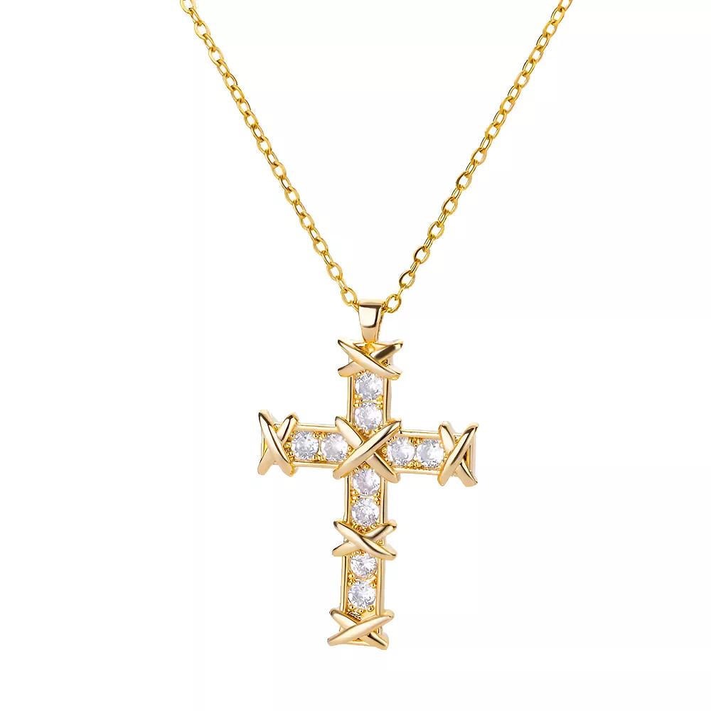 Gold Cross Zircon Necklace for Women & Men
