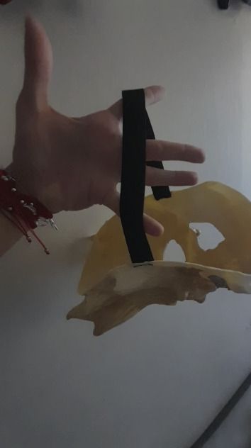 I used a thin black fabric to cover my eyes, making it look like a skull rather than a person wearing a mask. I used fabric glue to attach the mesh. The spiderweb scarf concealed my jawline.