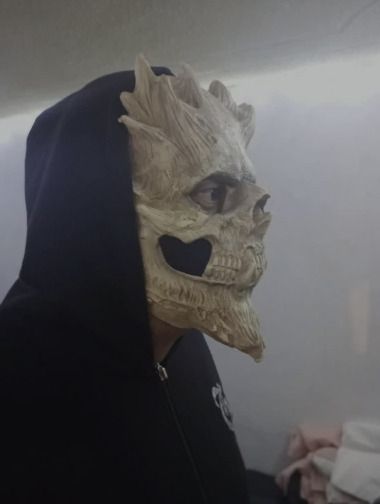 I feel cool and confident while wearing this mask. I love strolling through the park in a hooded robe with this mask on; it creates a special Halloween atmosphere, and people love taking photos of me in it.