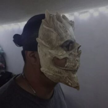 Made from high-quality latex, this skull mask features bone spurs and is hand-drawn from an original model to ensure authenticity and detail. The true beauty of this mask lies in its customization potential; upon receiving it, you have the option to enhance its color and details further with paint, allowing for a truly unique and terrifying look.