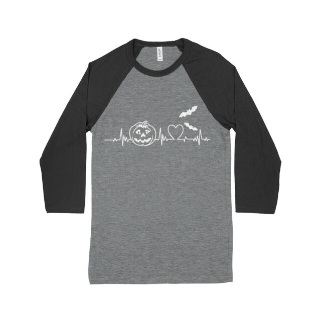 Halloween Heartbeat Unisex 3/4 Sleeve Baseball T-Shirt is no ordinary piece of clothing. Its contrast raglan sleeves, two-tone trim, and side-seamed detailing provide a retail fit for clothing that’s true to size.