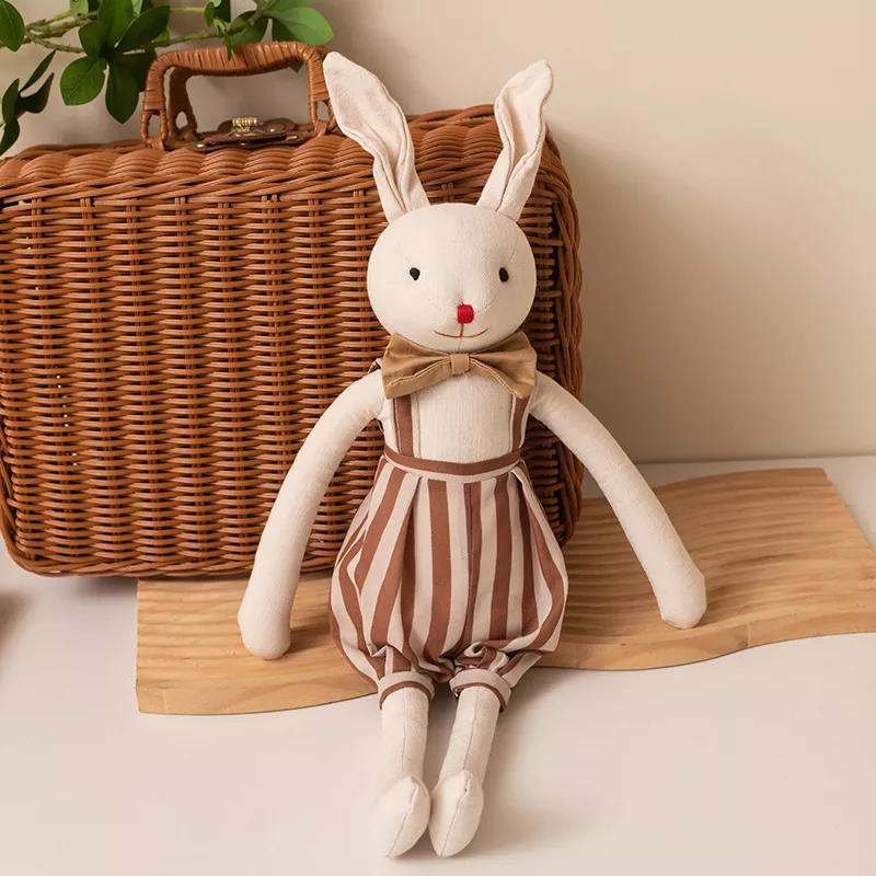 This stuffed bunny features a cute cloth dress that adds an extra layer of charm, while its smooth, plush fabric makes it perfect for soothing and comforting your little one. The doll is filled with soft, high-quality PP cotton that gives it a cozy, huggable feel. Its gentle and soft design makes it safe for young children to cuddle, and it can be a great sleep companion to help your child feel secure and relaxed.