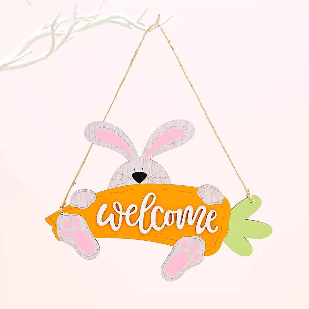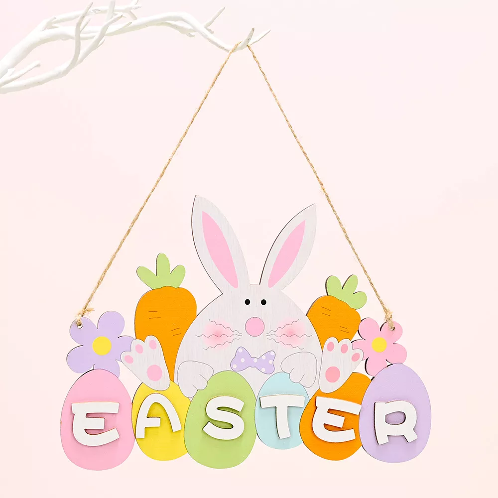 Happy Easter Bunny Carrot Wooden Hanging Ornaments