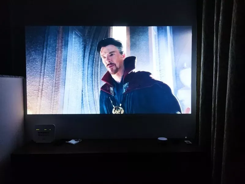 The version of Android that comes with the device is useful for emergencies. The list of apps you can install is very limited, and the video quality when using these apps is low. It also staggers a little bit (or maybe has like a 20 framerate). So, I recommend using the HDMI port. I tested it with a Chromecast TV 4k and another with HD. Videos play much smoother with them. But it staggers with scenes with high movement. That staggering is usually imperceptible. I managed to highlight it with a clip of a panoramic capture taken by a drone. I managed to reduce the staggering by switching to 1080p at 50Hz instead of 60Hz. The brightness is fine. You can even use it during the day. It supports only SDR, of course. The speaker works ok. Enough to listen to the news, but not for enjoying movies. You can connect a Bluetooth speaker, and the problem is solved. I couldn't find any section to configure the audio, so I imagine it supports only Stereo. The photo with Youtube was taken using Chromecast with GoogleTV (the HD version). It doesn't support HDMI-CEC, so you will have to use the projector's remote control to turn it on, off, and change the volume. The USB ports available are powerful enough to power a Chromecast v3 (those that do not have a remote control). These ports are powered only when the projector is on.