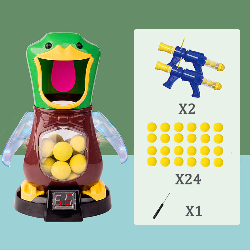 Bring laughter and excitement into your home with the Interactive Duck Shooting Game! This hilarious air-powered blaster set lets kids take aim at a funny duck target, shooting soft foam balls up to 33 feet away. Perfect for children who love action-packed games, it turns any room or backyard into a fun shooting arena. With no batteries required, this toy encourages active play and imagination while keeping things safe and easy to use.