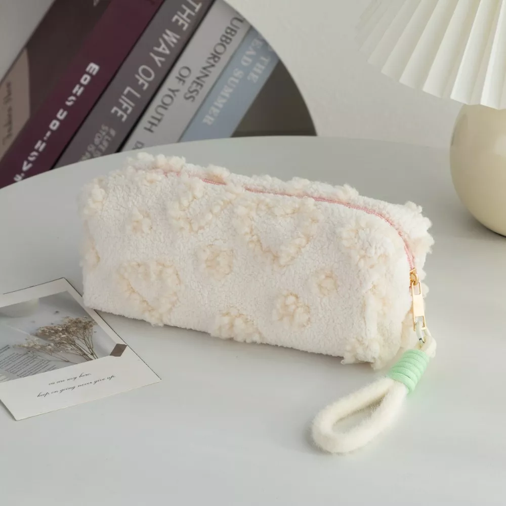 Introducing our Kawaii Berber Fleece Pencil Case, the perfect blend of style and functionality! Designed for students and stationery lovers alike, this charming pouch features an adorable love heart pattern that will brighten up any desk or backpack. With ample storage space to organize your pens, pencils, and art supplies, this pencil case is an essential for school, home, or office use.