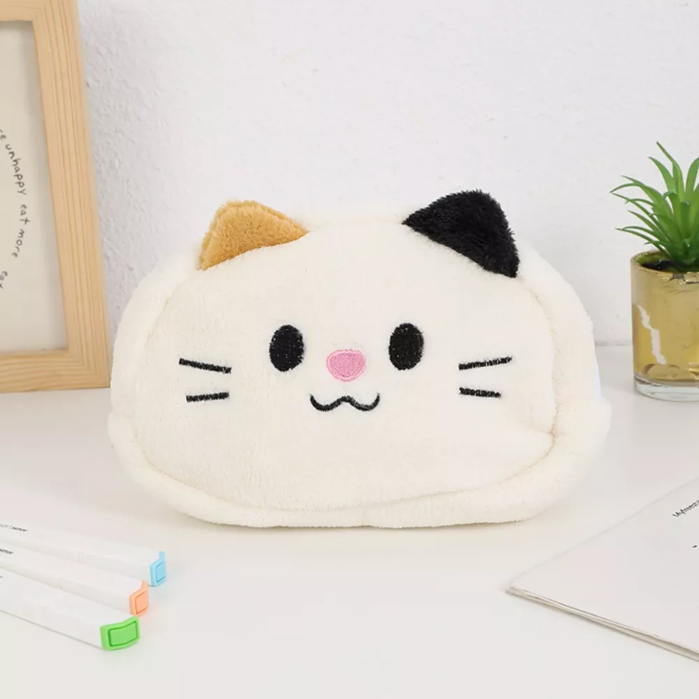 Keep your stationery and small essentials stylishly in one place with this irresistibly cute **Large Capacity Plush Cat Pencil Case**. Whether you’re organizing pens and markers or storing your everyday makeup items, this plush pouch brings both charm and convenience to your daily routine. Featuring a whimsical smiling cat design in soft plush fabric, it’s more than a pencil bag — it’s a cozy companion that brightens up any workspace or vanity.