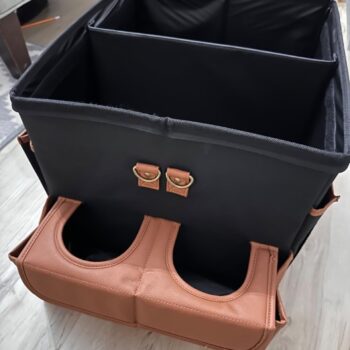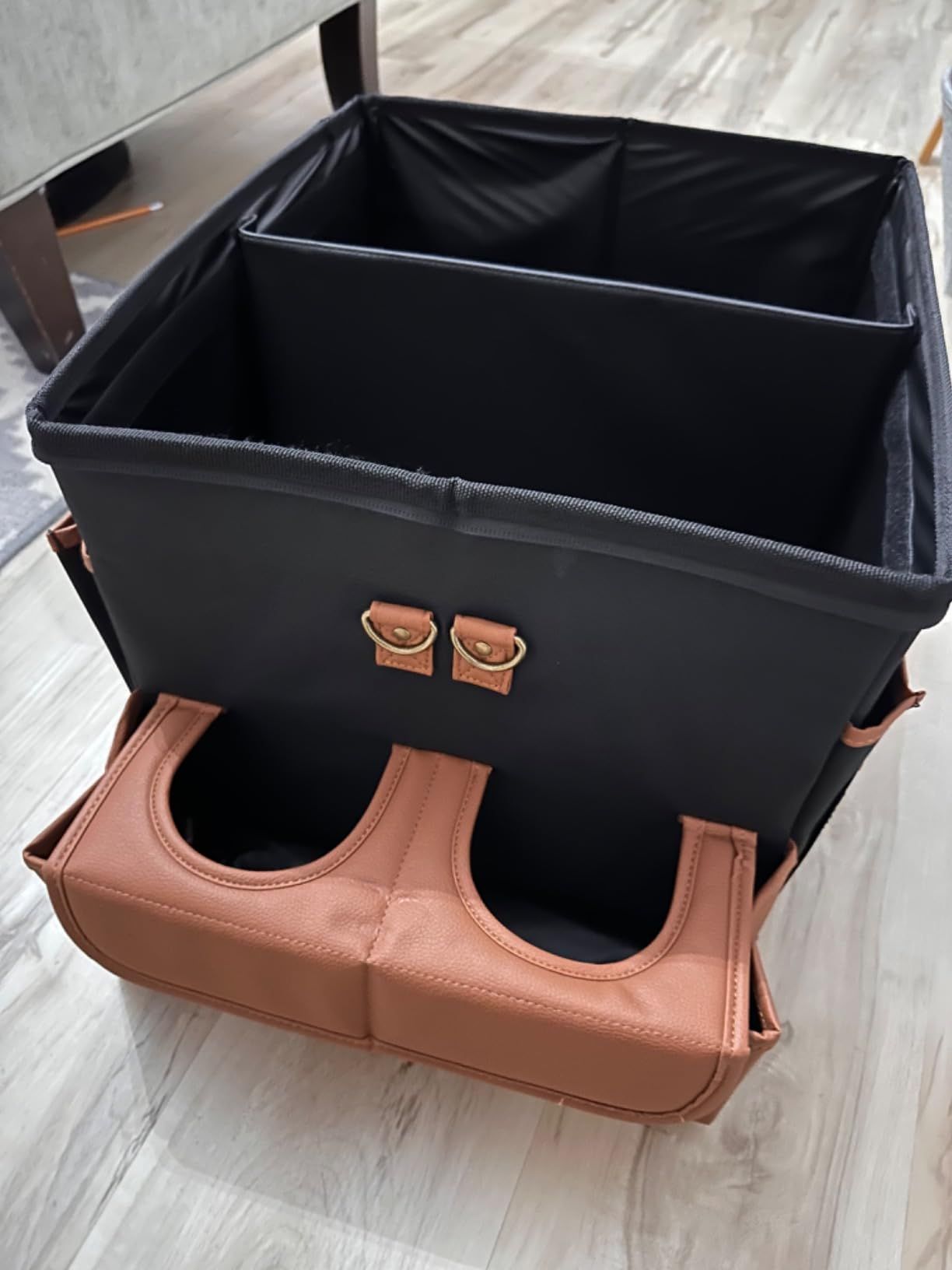 • Sturdy & stable design: Crafted from wear-resistant 600D Oxford fabric and eco-leather, this organizer has solid walls and holds its shape perfectly even if fully loaded. The inner lining is completely waterproof to protect against any leaks.