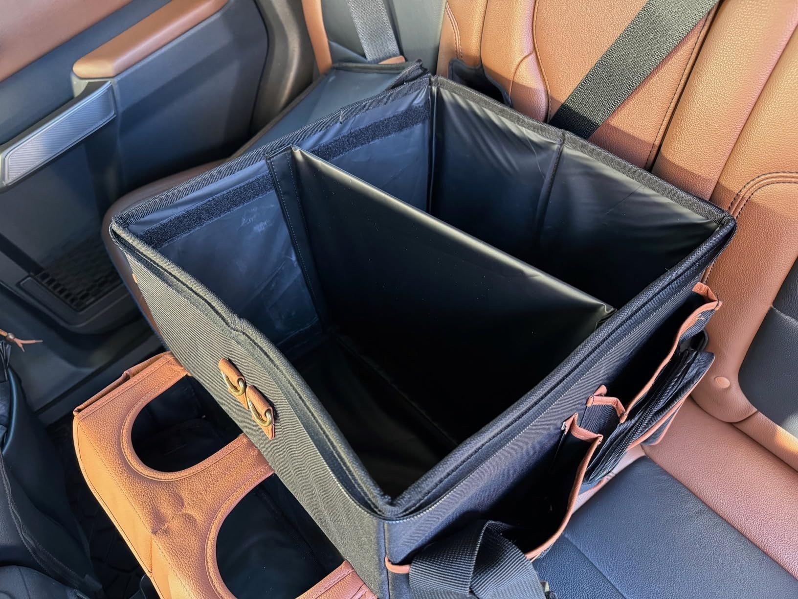 • Smart & compact: Our Magic Box organizer is fully collapsible – you can easily fold it up when not in use to save space. Plus, it fits perfectly between two child seats or two passengers in the back!