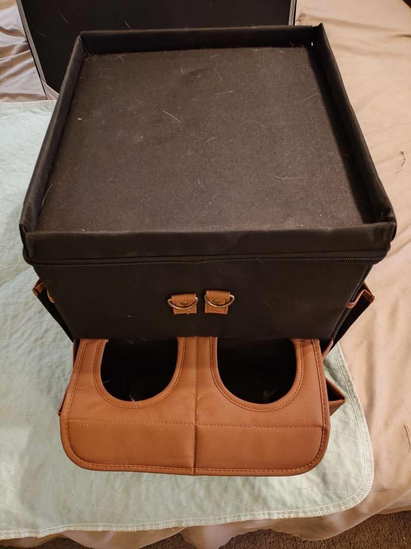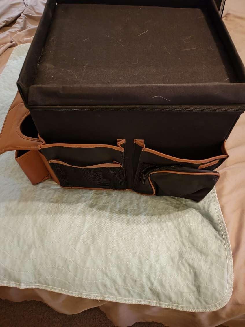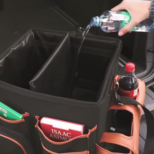 Large compartment with a removable divider, eight side pockets and two front pockets can hold everything you need on the road – from drinks to gadgets. It is suitable for all car models, and you can use it in your front seat, back seat, or even in the trunk. Plus, the lid works as a backseat table!