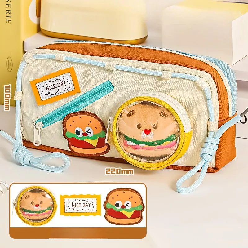 Large Hamburger Pencil Case – Kawaii Aesthetic Food Pouch Organizer