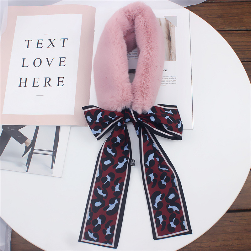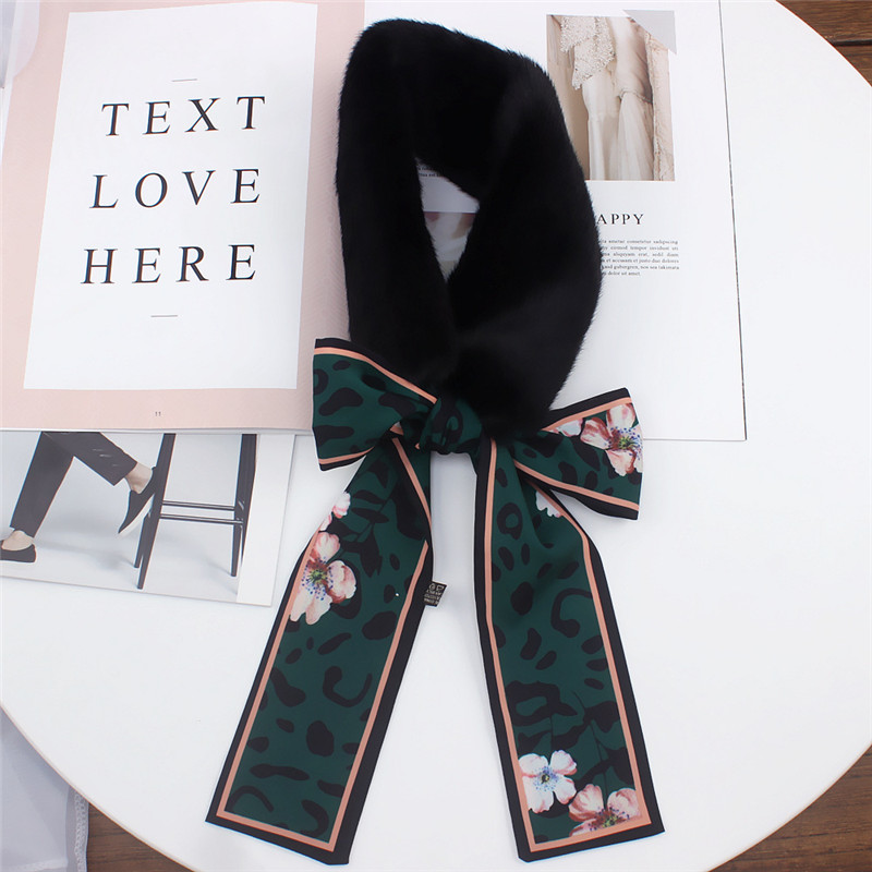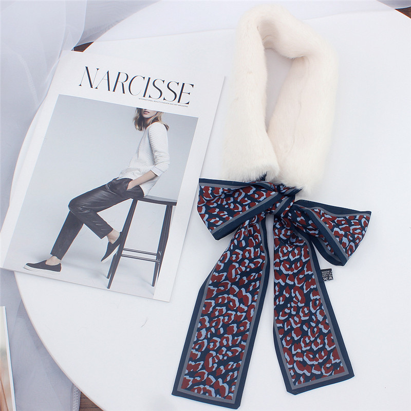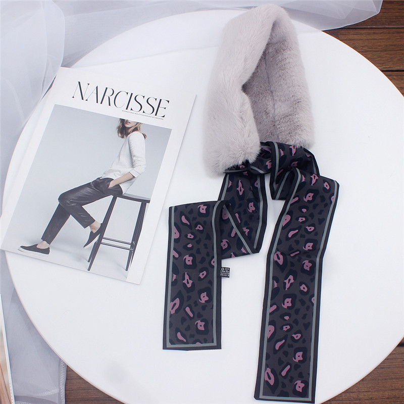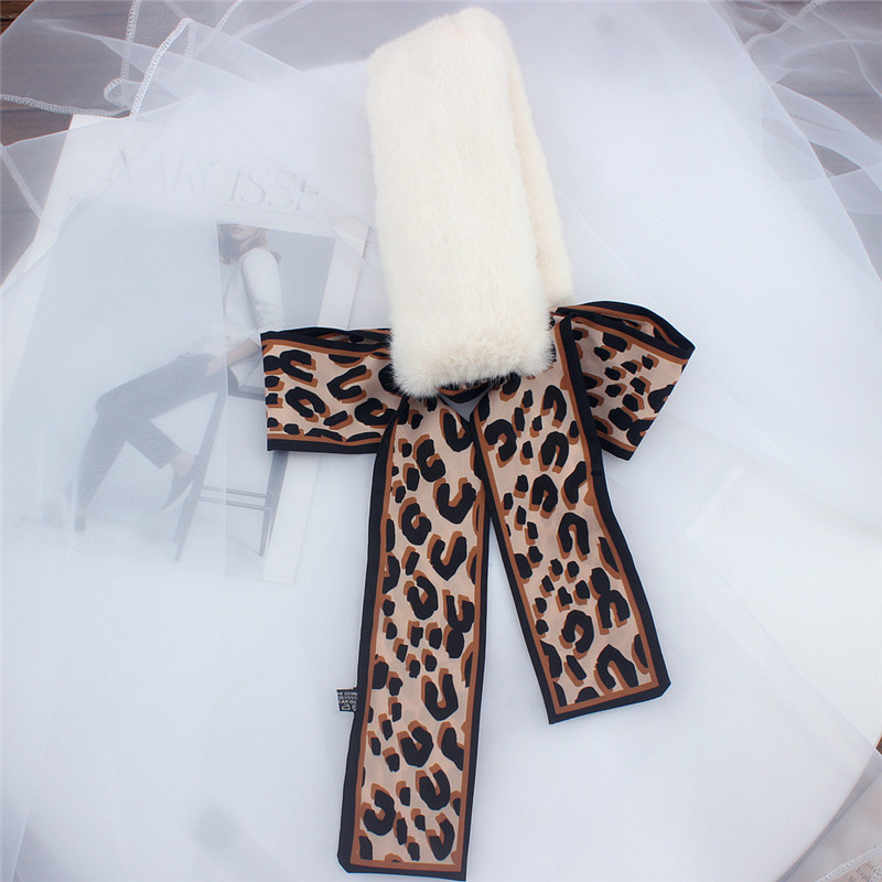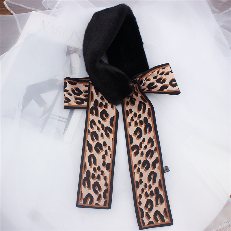 Leopard Print Fur Scarf for Women – Skinny Silk Neckerchief Wrap