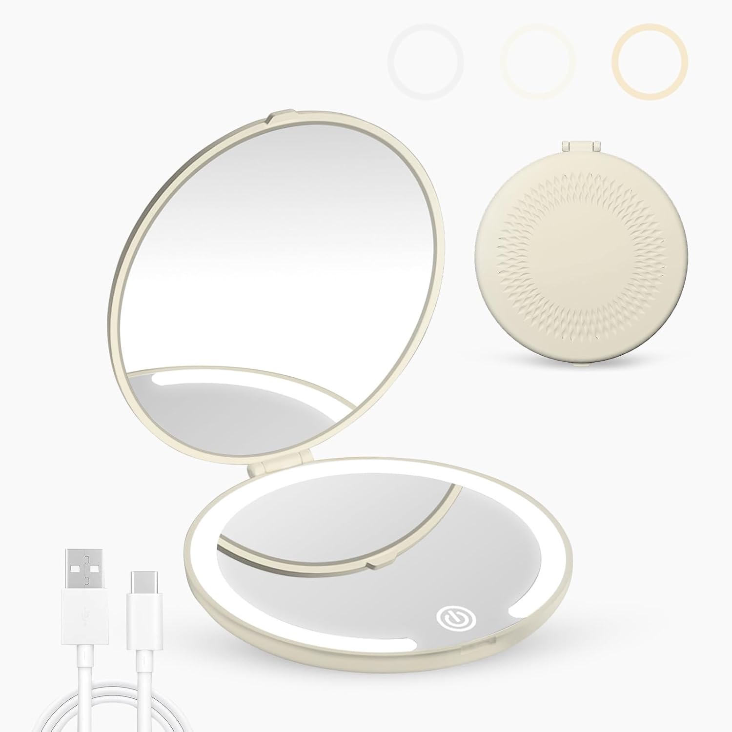Lighted Makeup Mirror with 1X & 5X Magnification – Portable USB Rechargeable Compact Mirror