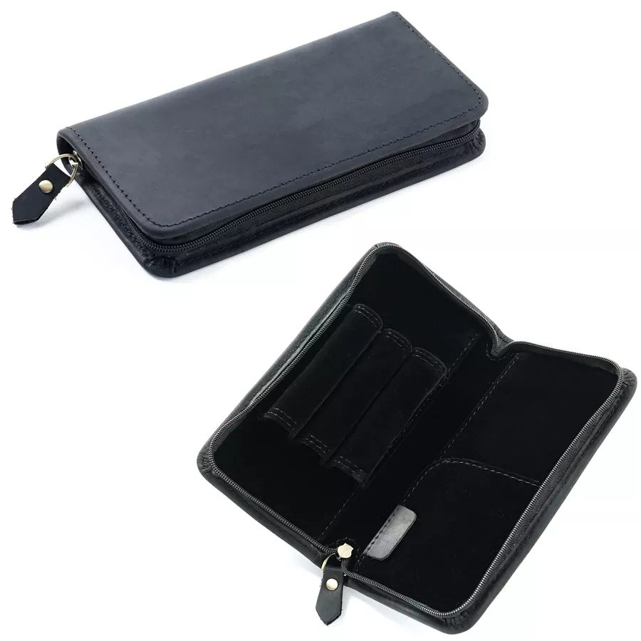Featuring a sleek zipper closure, this pen bag ensures that your items stay secure and organized, no matter where you go. With a capacity to hold up to three pens, it’s compact enough to fit into any backpack, briefcase, or desk drawer, yet spacious enough to keep your essentials in one place. Its high-quality leather construction guarantees long-lasting durability, making it a worthy investment for years to come.