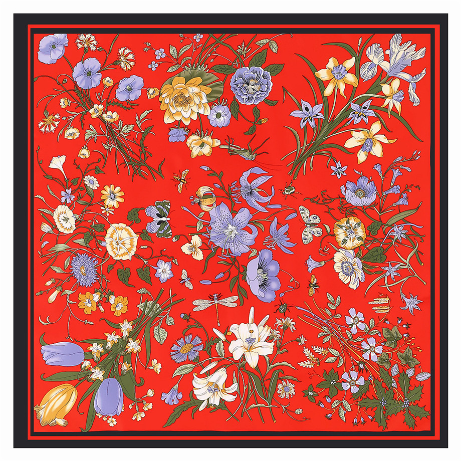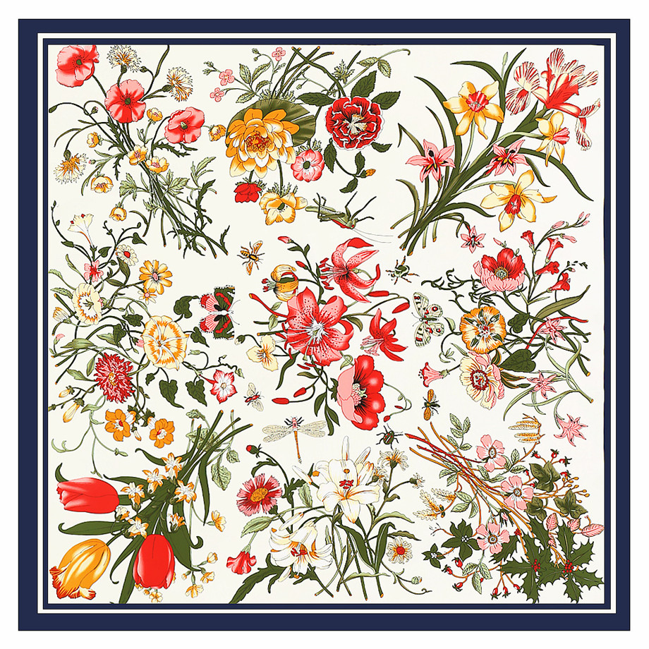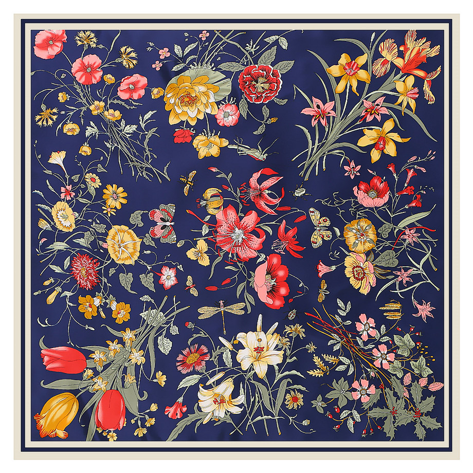 Luxury 51-Inch Floral Silk Square Scarf for Women
