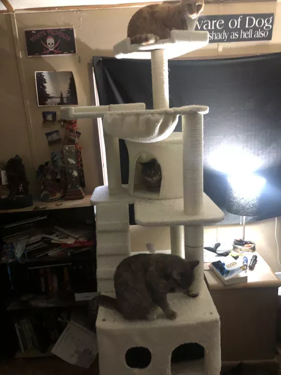 It’s absolutely beautiful! The design is sleek and modern with a touch of elegance. It easily blends into my home decor without sticking out like some other pet accessories tend to do. Picture this: an eye-catching piece that enhances your living space while also being functional for your pets? Yes please! But here's where it really hits the jackpot - every single one of my cats loves it! And trust me; getting them all to agree on something is harder than herding cats (pun intended). They're constantly either playing around on it or taking their afternoon naps there. It's become their go-to spot in our house. I've seen them leap from level to level with such ease and comfort; they truly feel at home on this thing! If they could talk human language, they'd probably tell you how much fun they have playing king of the castle or hide-and-seek using their new favourite toy.