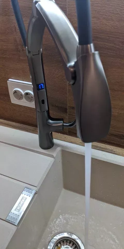 The Luxury Gun Gray Digital Display Kitchen Faucet boasts a range of impressive features: