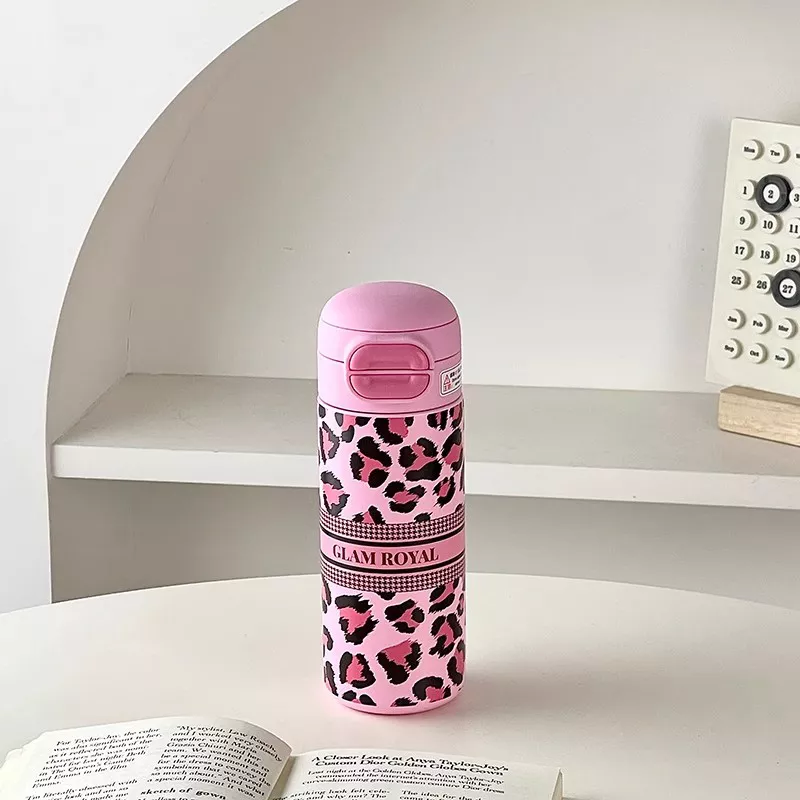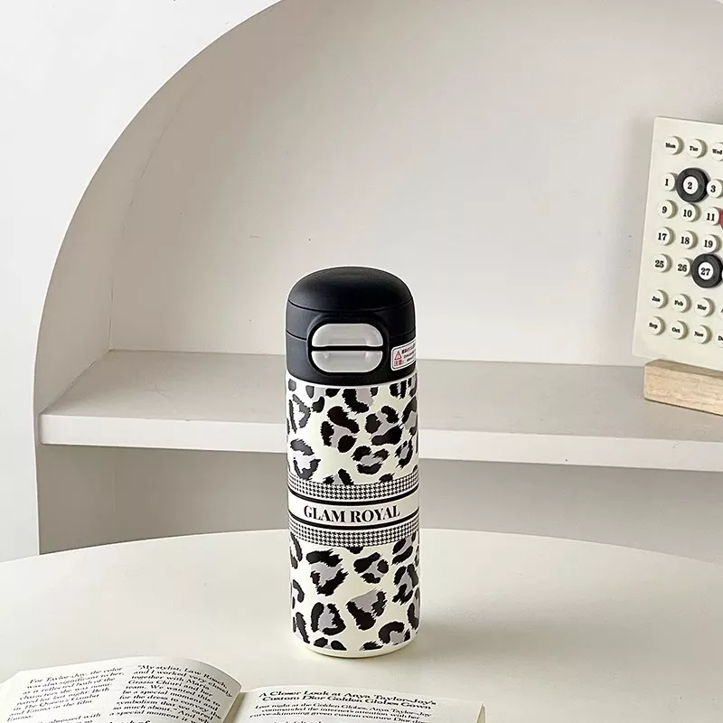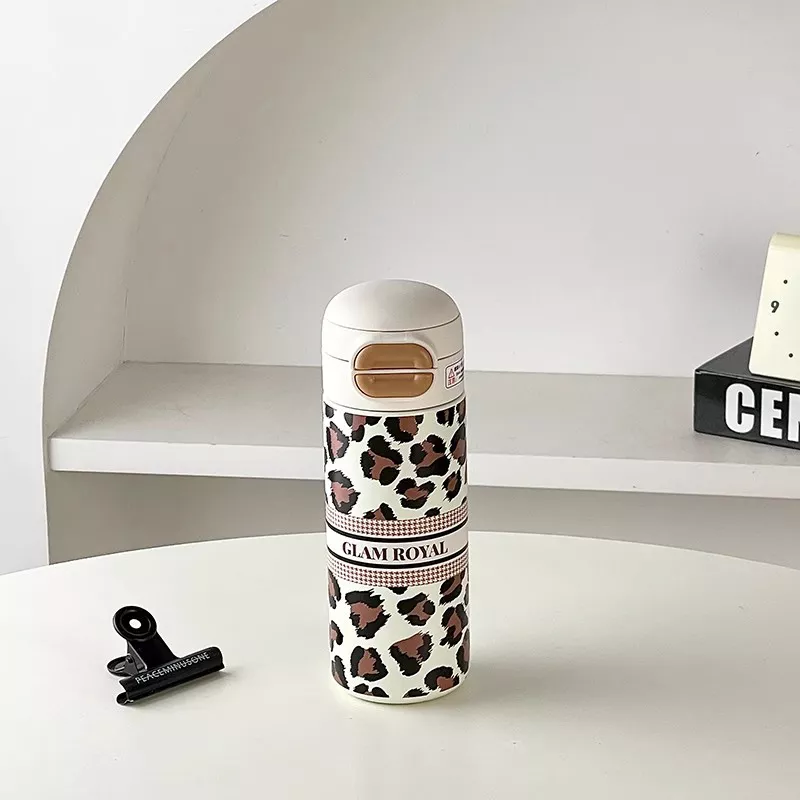 Luxury Leopard Print Stainless Steel Thermal Coffee & Water Bottle with Straw
