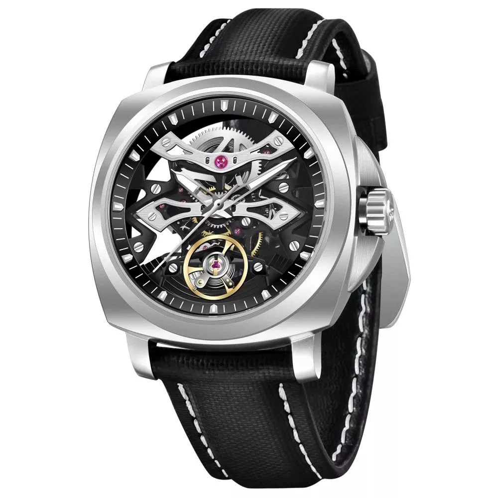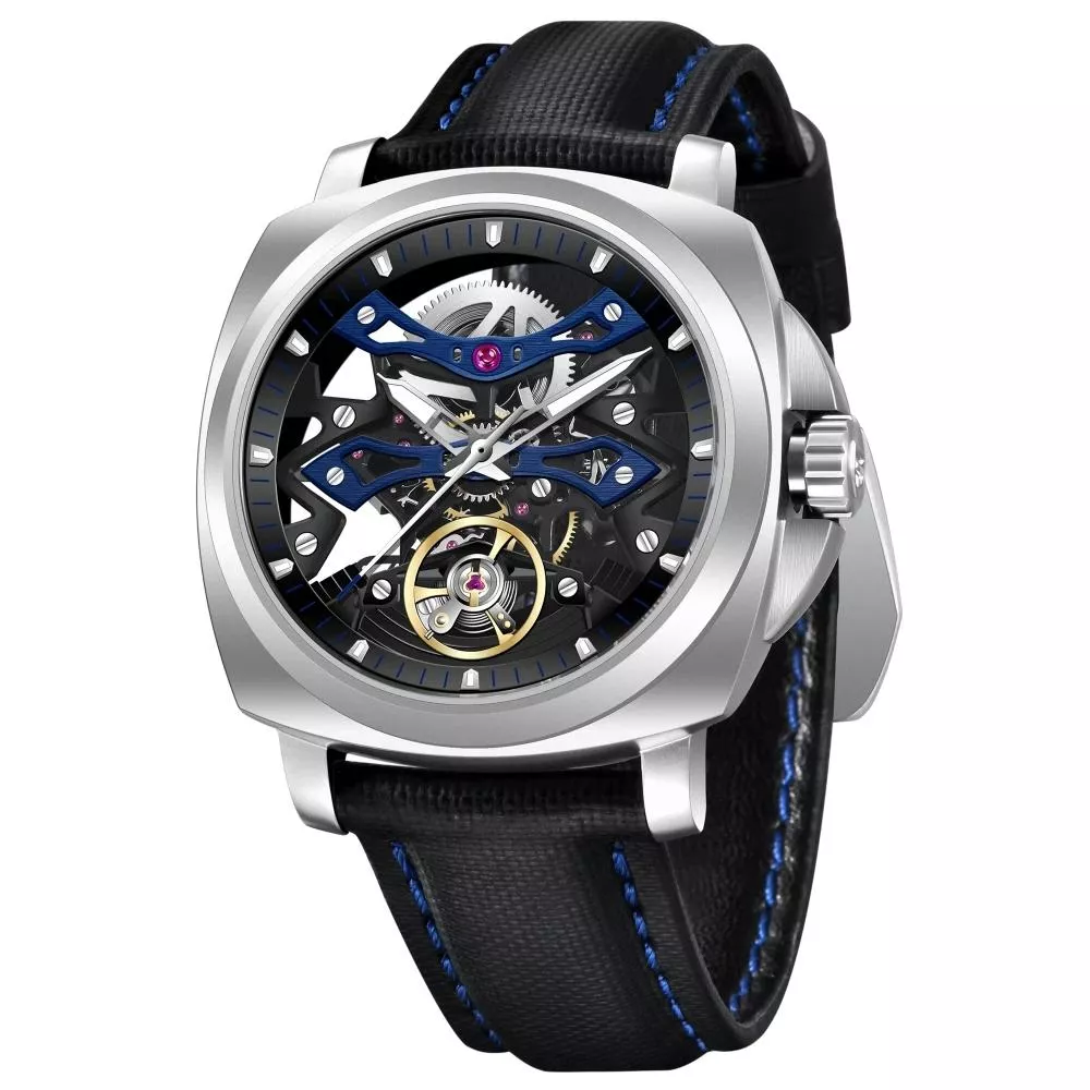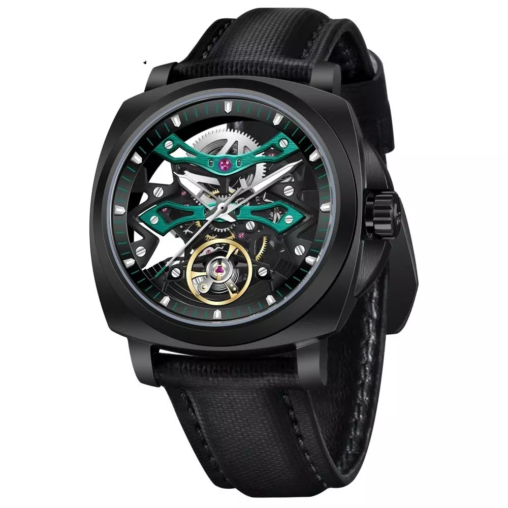 This watch features a high-grade stainless steel case paired with a durable nylon strap for a bold, comfortable look. The transparent back and skeleton design showcase the intricate inner workings, while the luminous hands and night light features ensure visibility in low-light settings. With a scratch-resistant sapphire crystal window and a robust 10 ATM water resistance, this watch is ready for everyday challenges, from the office to outdoor adventures.