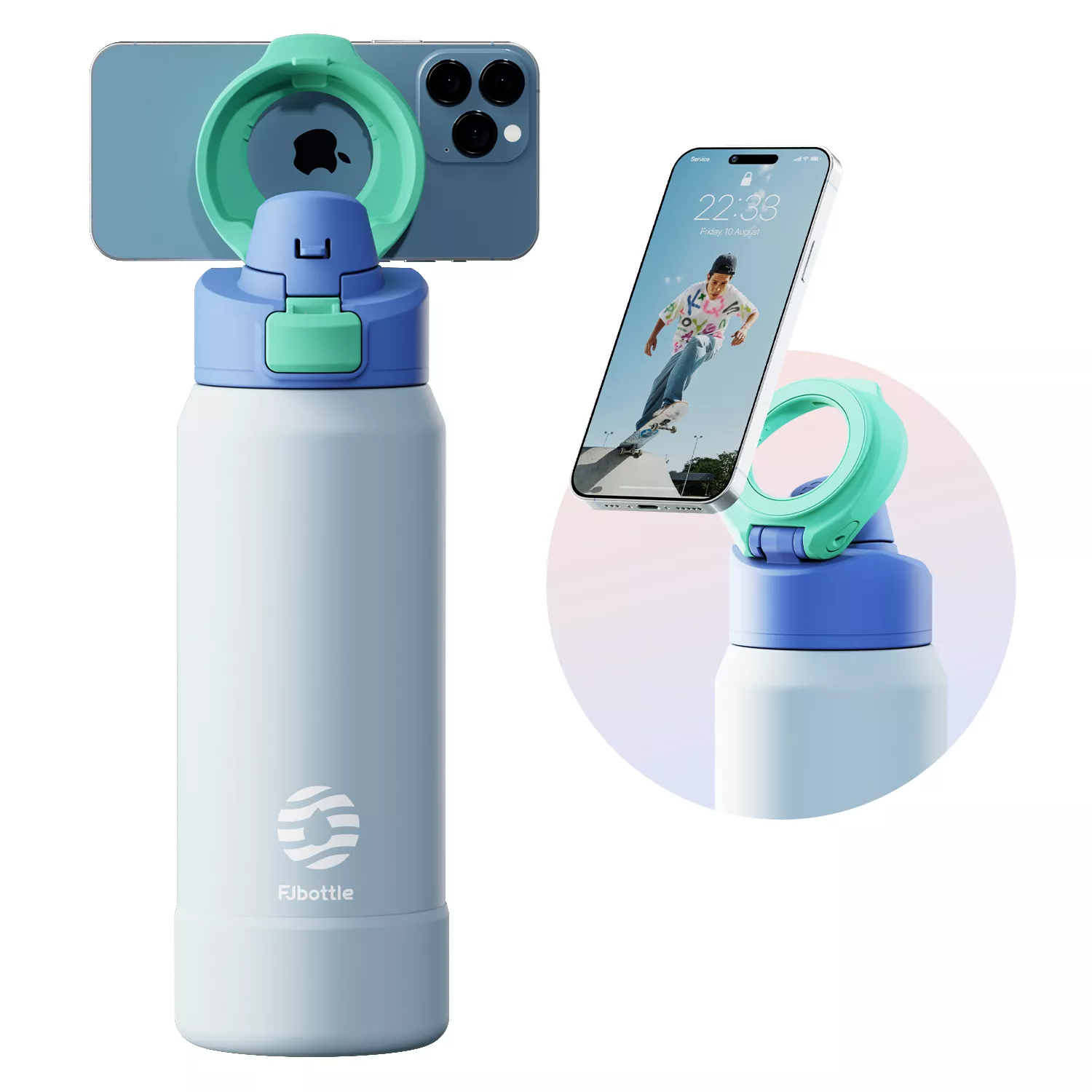 Whether you’re hitting the gym, hiking your favorite trail, driving cross-country, or working at your desk, this bottle’s smart features make it your ideal companion. The bouncing flip-top lid allows quick one-handed access, while the integrated magnetic surface securely holds your phone, so you can watch videos, scroll, or take calls without fumbling. Thoughtfully designed, environmentally friendly, and made for people who are always on the go.