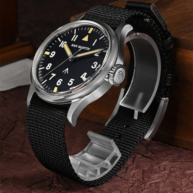 Men’s Automatic Pilot Watch with Nylon Strap and Sapphire Glass – 38.5mm Military Style