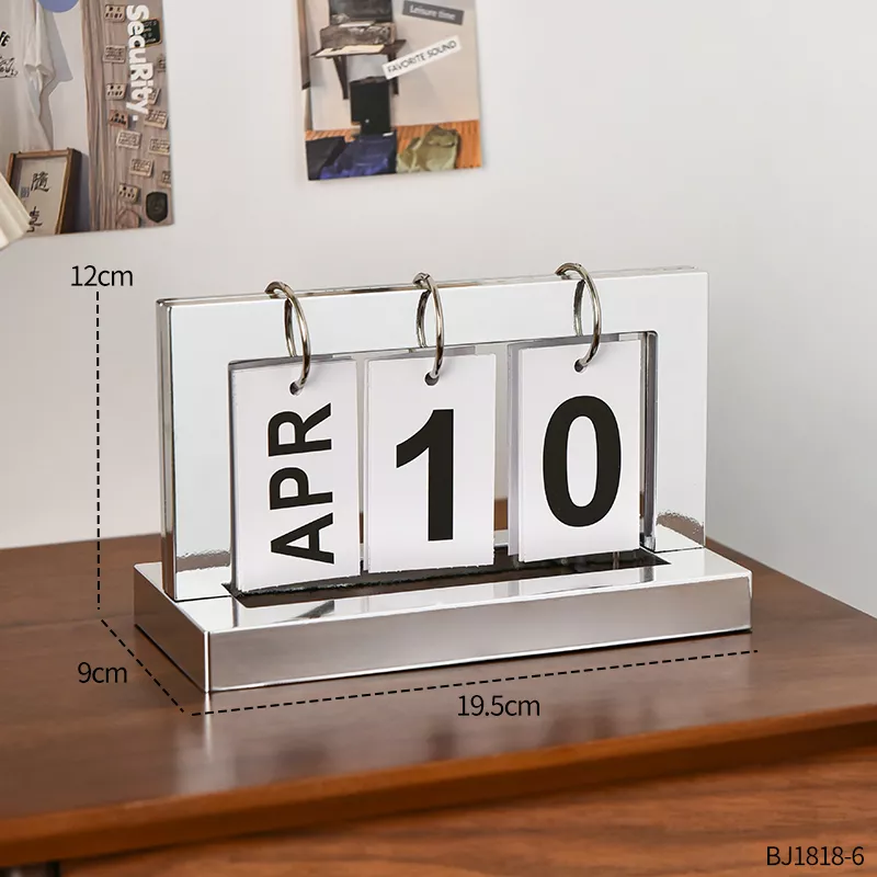 Elevate your workspace or living area with this modern flip desk calendar, a perfect blend of function and elegance. Designed with a sleek metal structure and a creative page-turning mechanism, this calendar brings a refined touch to any room. Whether placed on your office desk, nightstand, or bookshelf, it stands as both a useful time-tracker and a decorative statement piece.