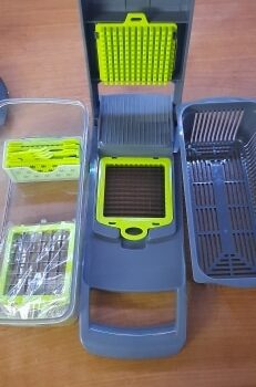 I am amazed at how quickly this veggie chopper has become part of my food preparation. I use it on a regular basis to chop carrots, radishes, cucumbers, zucchini, potatoes, cooked beets, and turn one or a combination of them into ready-to-eat or ready-to-cook form. It's pretty sturdy, too. The blades are quite sharp, necessarily so, so take caution when handling them. On my unit the tiny two-part plastic slider that locks the blades in place came apart and I need to figure out how to reinsert it. But the unit works quite well without this piece. Much recommended.