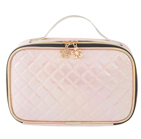 Excellent product at a very reasonable price. The bag is nice light pink color and pretty sturdy zippers. No unpleasant odor. I don’t use it for travelling but for everyday makeup and this bag can fit all my makeup essentials like lipsticks, brushes, mascara, eyeshadows, foundations, etc. If you are looking for a new high quality makeup bag – this is for sure the product for you. Recommend!