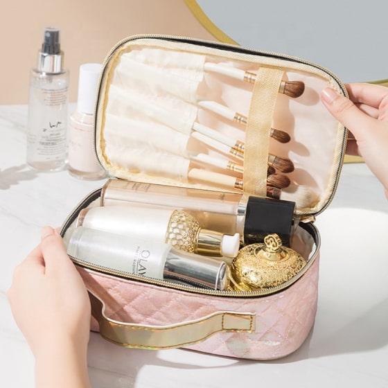 I was a little anxious about the bag quality but it’s by far the best makeup bag I've ever used! It’s great quality, perfect size for regular use as well as for travelling. Beautiful pink color and durable material. It perfectly fits all my girl stuff and has convenient slots for brushes. It’s worth the money. I definitely recommend it.