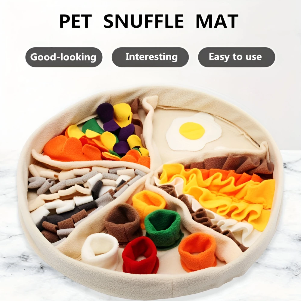 Crafted from soft, pet-safe materials, this chew-friendly mat offers a mix of textures that make playtime engaging and satisfying. With built-in squeakers and hidden pockets for treats, it transforms ordinary moments into tail-wagging fun. Your dog will love sniffing through each slice, hunting for tasty surprises, and enjoying a satisfying chew session afterward.