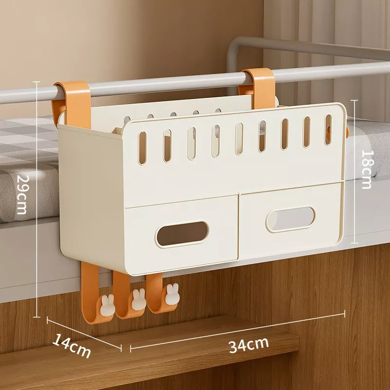 Designed for modern living, this multi-functional bedside storage box easily hooks onto your bed frame, rails, or headboard—no tools or installation required. Crafted from durable, easy-to-clean plastic, it offers multiple compartments for all your bedside essentials. A built-in tissue holder adds to its clever design, while the included hook is perfect for hanging headphones, cords, or small accessories.