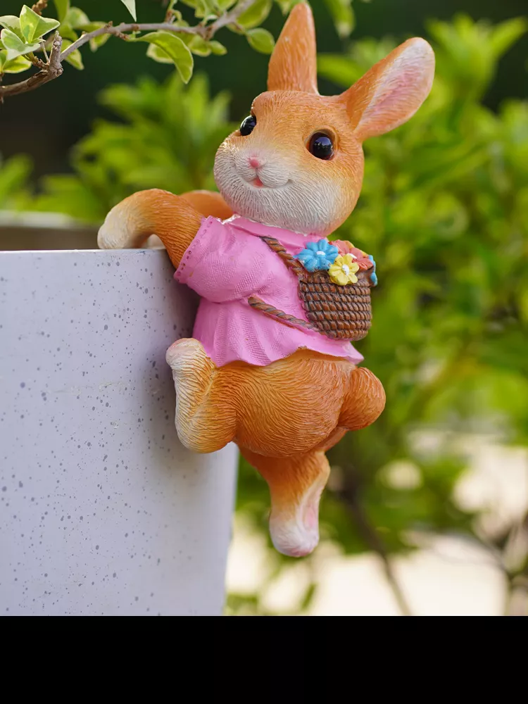 What sets this decoration apart is its interactive feel—it looks as if the bunny is truly climbing up to say hello. The hand-painted details, combined with the realistic yet cartoon-inspired design, give it a personality that’s hard to resist. It’s a small piece that makes a big impact, instantly brightening the atmosphere wherever it’s placed.