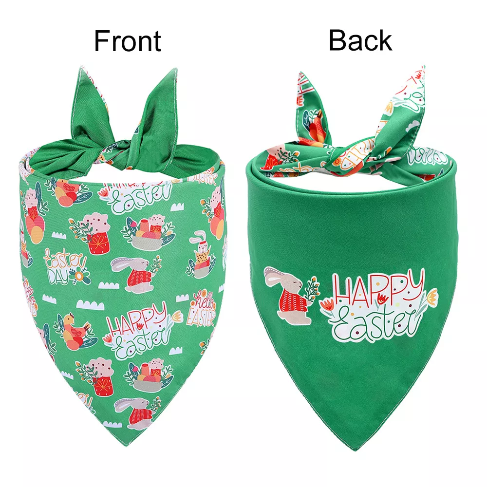 Crafted from high-quality polyester, this bandana is soft, breathable, and gentle on your pet’s skin. It’s also machine washable and durable, making it ideal for playful pups and curious kitties alike. The lightweight fabric keeps your pet cool even on warm days, while the vibrant egg and bunny-themed prints add a fun, festive touch. With its double-sided design, you get two playful looks in one scarf!