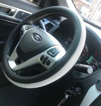 I love all that sparkles. Apart of me wishes that it was sparkly all the way around. But it’s pretty. I’ve had this steering wheel cover for about two weeks. It looks great, and it fits my Ford Escape perfectly. It was difficult to get it on, but I would except it to be. I’d definitely recommend it.