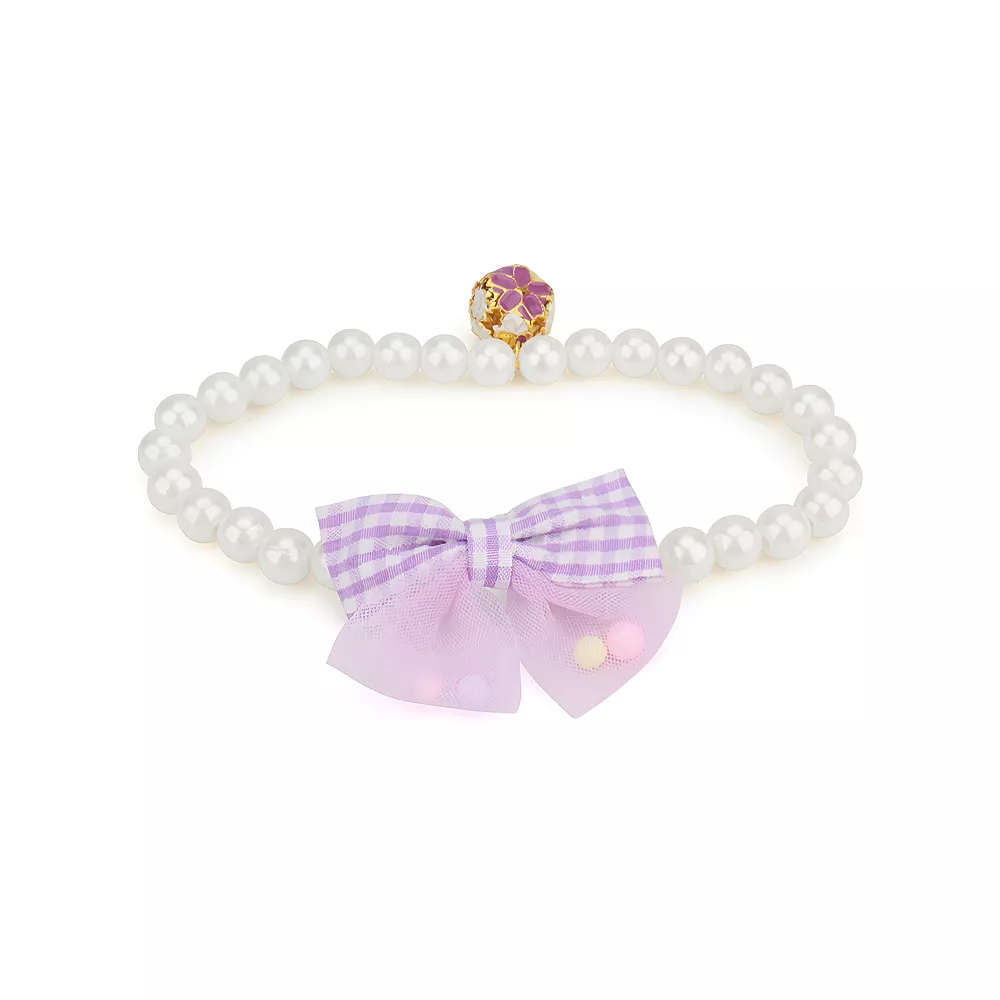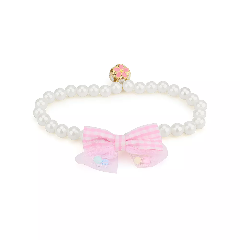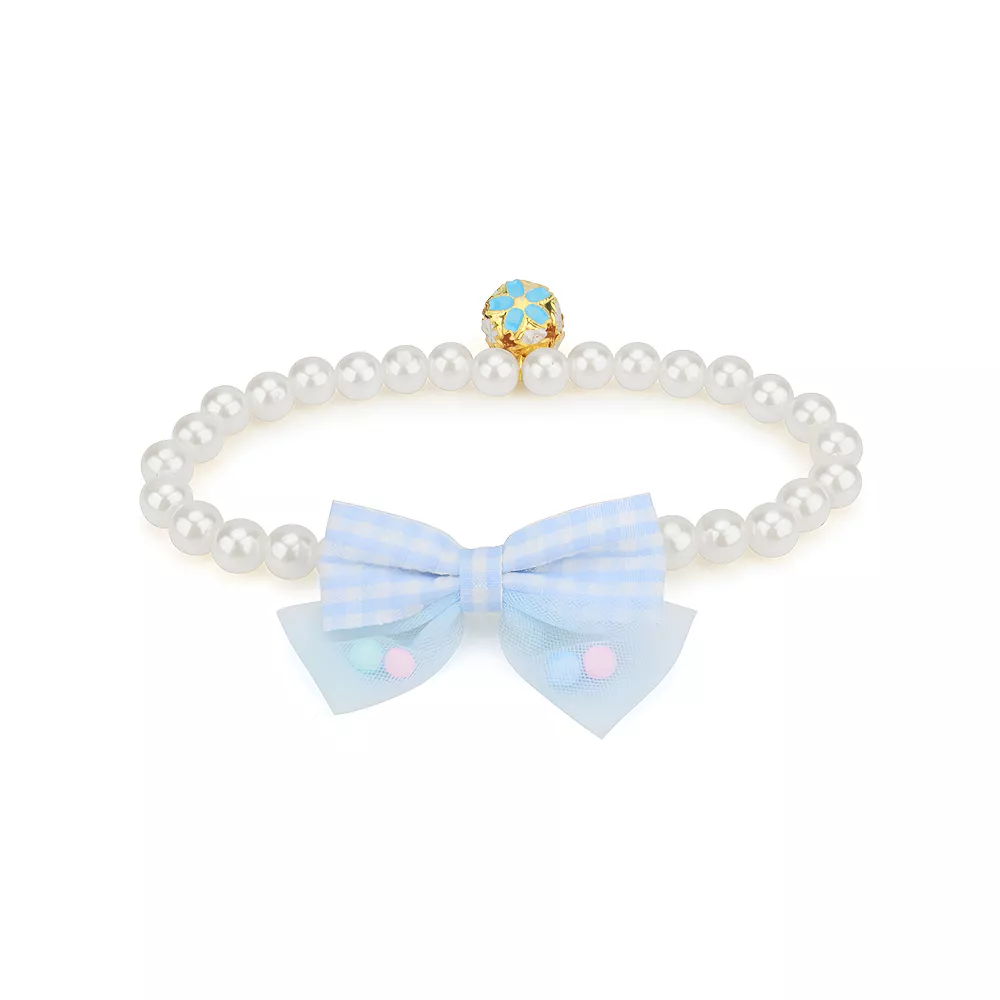 Simulated Pearl Necklace Bow Elastic Collar for Small & Medium Dogs