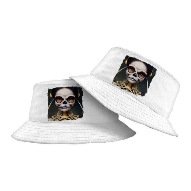 Skeleton Print Bucket Hat – Halloween Themed Hat – Creepy Girl Bucket Hat