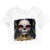 Skeleton Print Women’s Cropped T-Shirt – Halloween Themed Crop Top – Creepy Girl Crop Tee Shirt