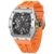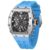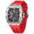 This watch is crafted with a robust 42mm stainless steel case shaped in a distinctive tonneau silhouette. Its skeleton dial reveals the intricate quartz movement inside, bringing mechanical artistry to the forefront. Topped with scratch-resistant sapphire crystal glass, the face remains crisp and clear over time. A thick 0.86-inch rubber strap offers secure, flexible wear whether you’re at the gym, outdoors, or just keeping it casual.