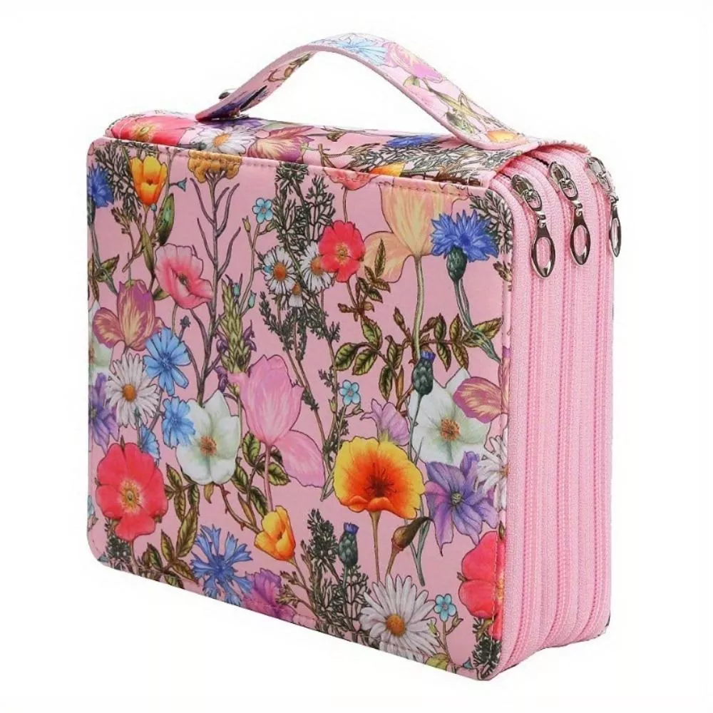 Small Floral Fabric Pencil Case with 120 Slots – Portable Zipper Organizer