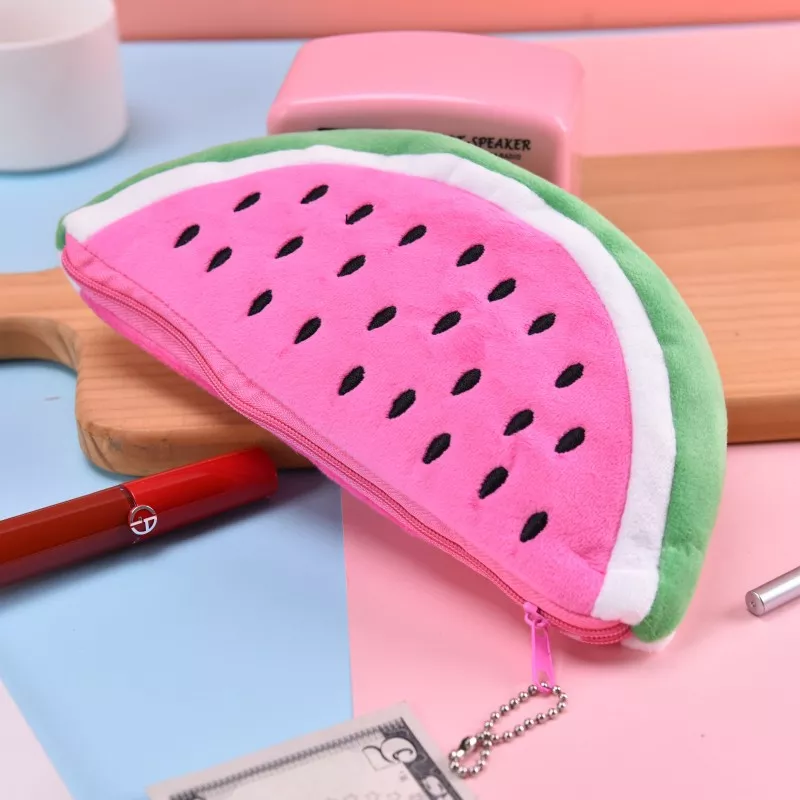 Brighten up your school or office supplies with this adorable Soft Plush Watermelon Pencil Case. Designed with a cute fruit theme, this kawaii stationery pouch is perfect for girls who love fun and functional accessories. Made from plush material, it feels soft to the touch and adds a cheerful vibe to your desk or backpack. Compact yet roomy, this pencil case is an excellent way to keep your pens, pencils, erasers, and other small essentials neatly organized.